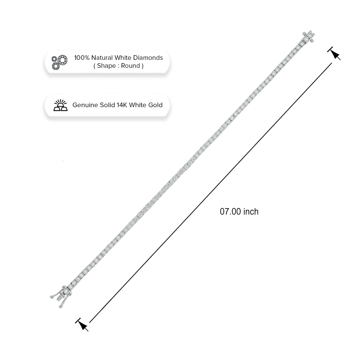 Elevate your style with our 14KT White Gold Everyday Tennis Diamond Bracelet. Crafted with brilliance, this timeless piece features a continuous row of 1ct natural diamonds, adding sparkle to every moment. Perfect for any occasion it comes with lobster lock for secure closure.