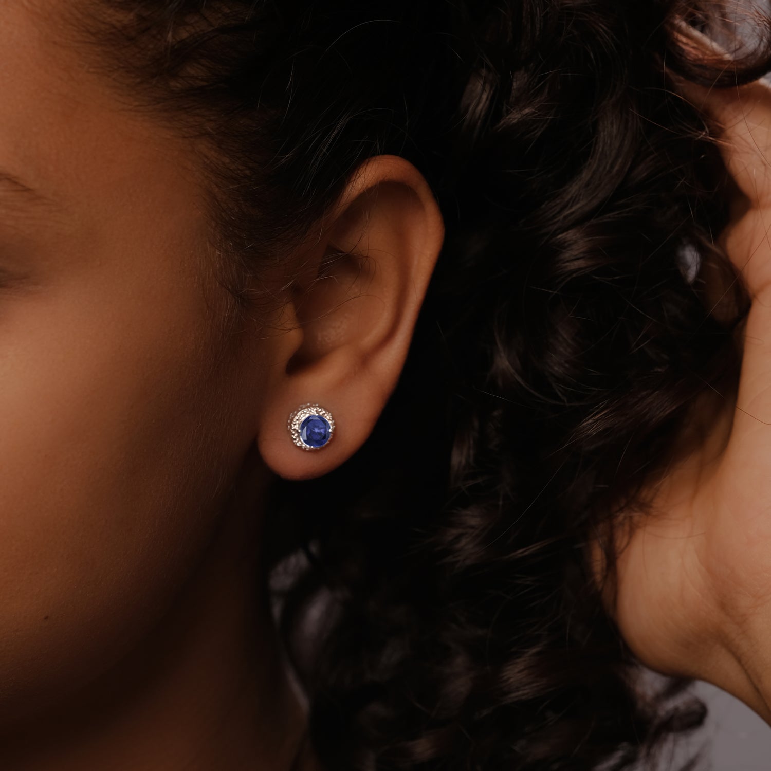 Round Coloured Stone Diamond Earrings in 925 Sterling Silver