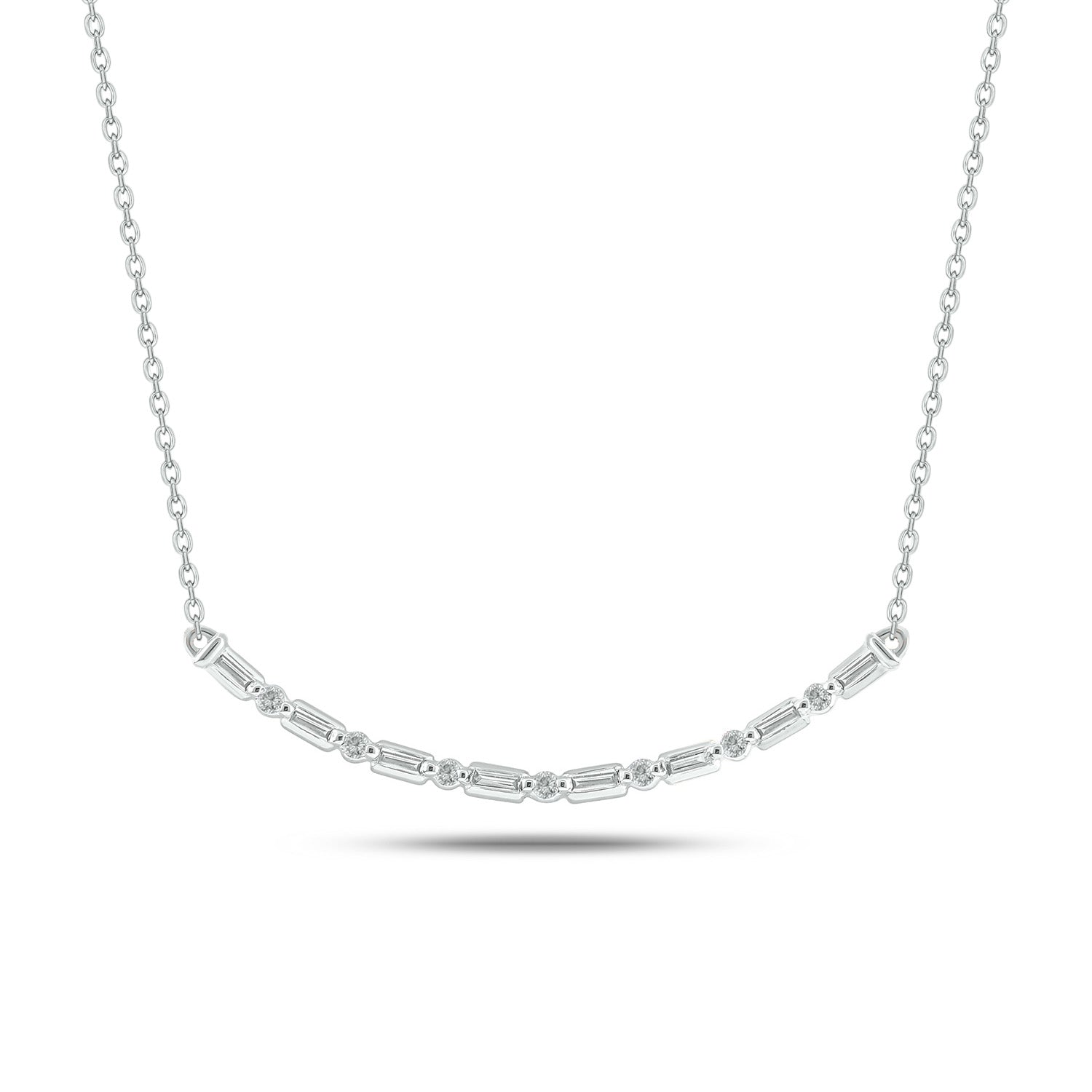 Elevate your style with this elegant diamond bar necklace crafted in polished 925 sterling silver. This curved diamond bar necklace offers a refined and modern look, making it a beautiful necklace for women and a meaningful gift for her.