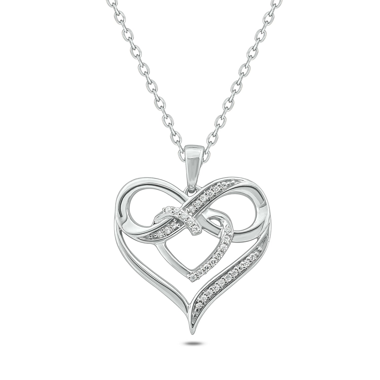 A quiet expression of forever. This fluid double heart and infinity design, sculpted in solid 10K gold and accented with natural diamonds, speaks to lasting love and intertwined lives. Thoughtful in form, timeless in meaning.