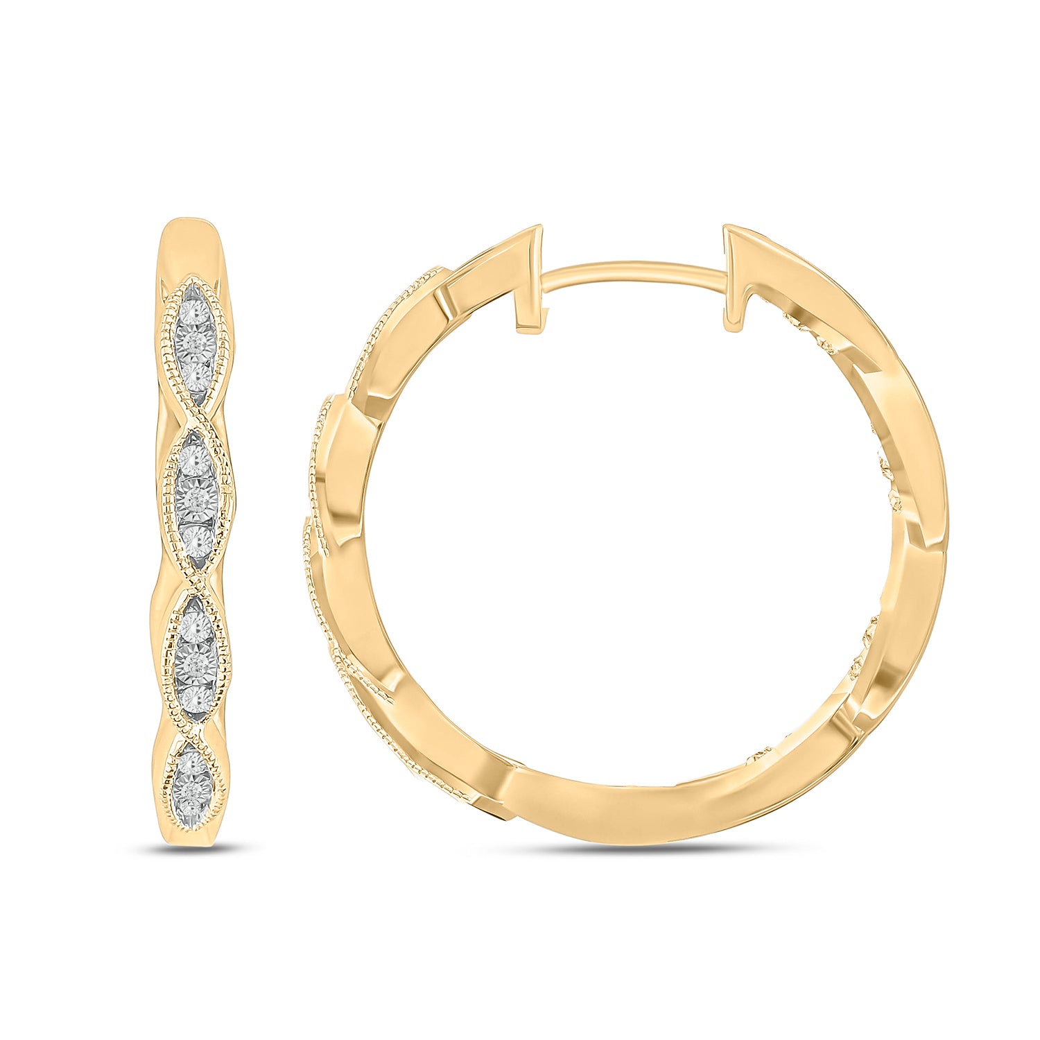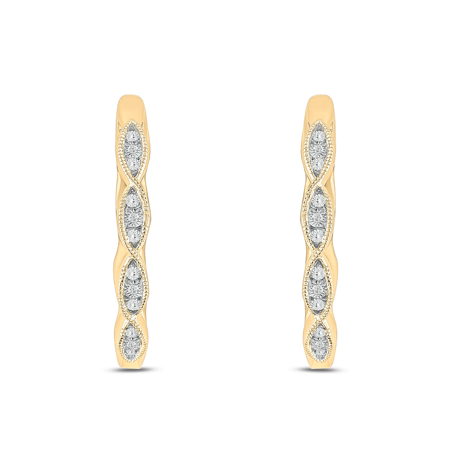 • These hoop earrings showcase a series of sparkling diamonds set in a miracle plate style, enhancing their brilliance and creating a radiant look- making these earrings perfect for both everyday wear and formal occasions.