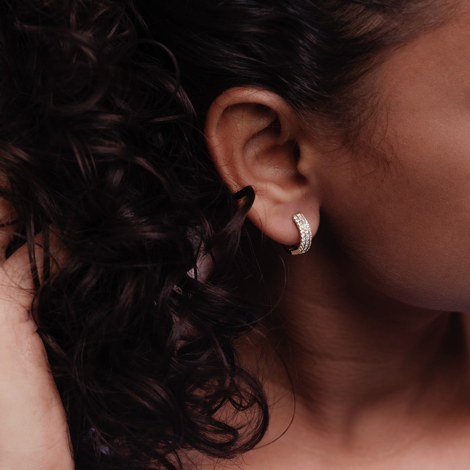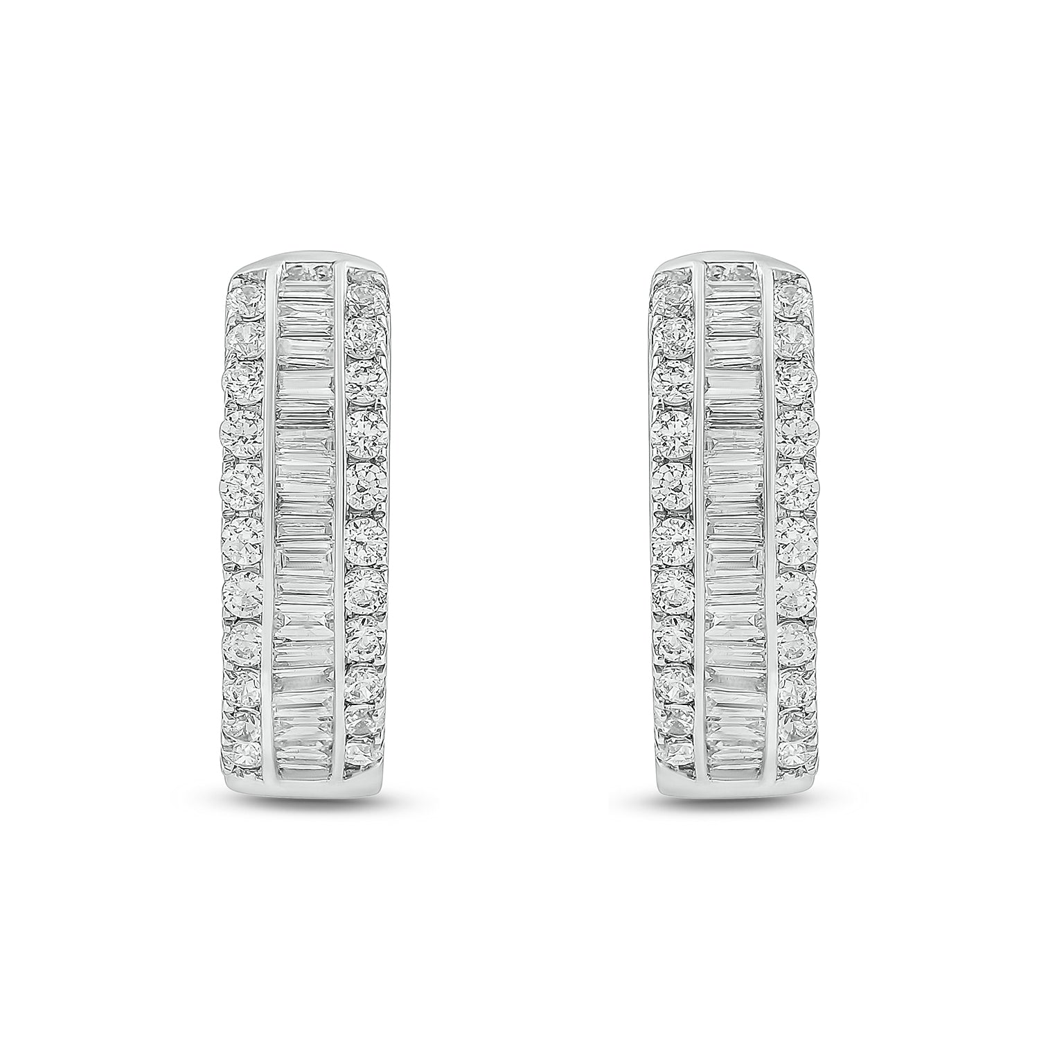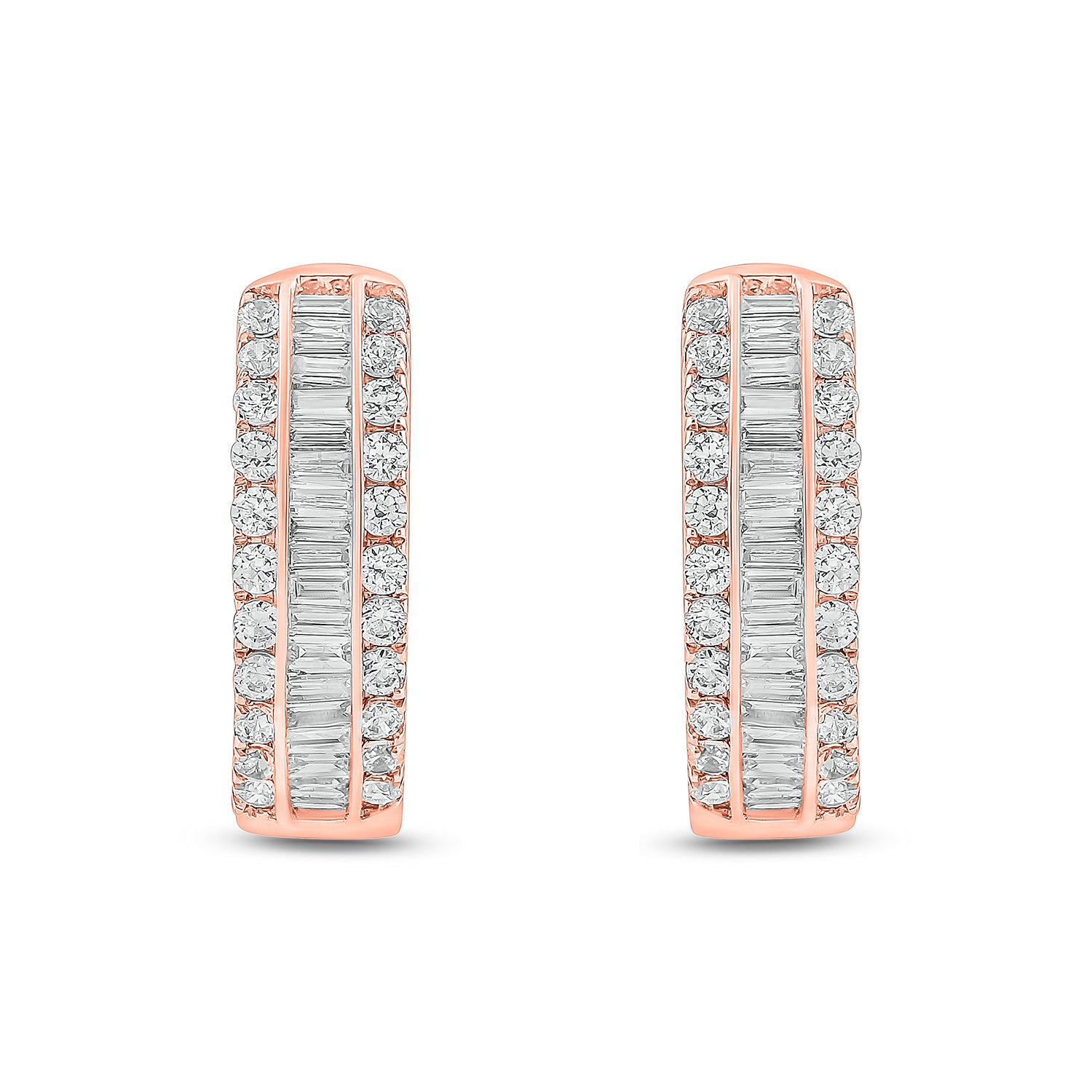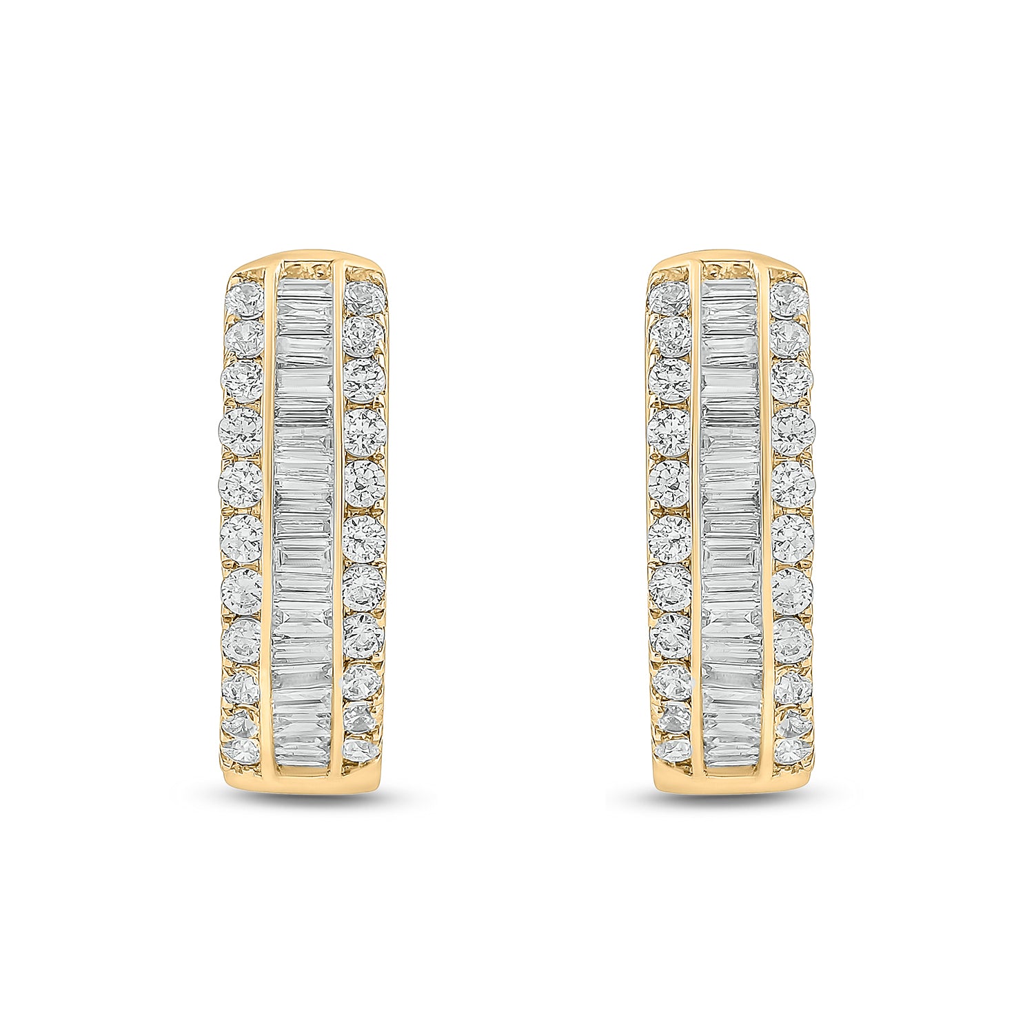 Unveiling a mini dainty masterpiece, these hoop earrings are crafted exclusively in 10kt gold featuring 1/2 ct natural round & baguette diamonds with a hinge back closure. Available in metal colors of your choice - White Gold, Yellow Gold & Rose Gold
