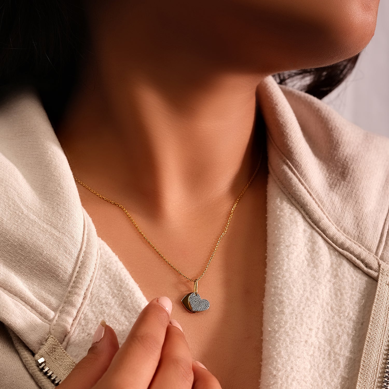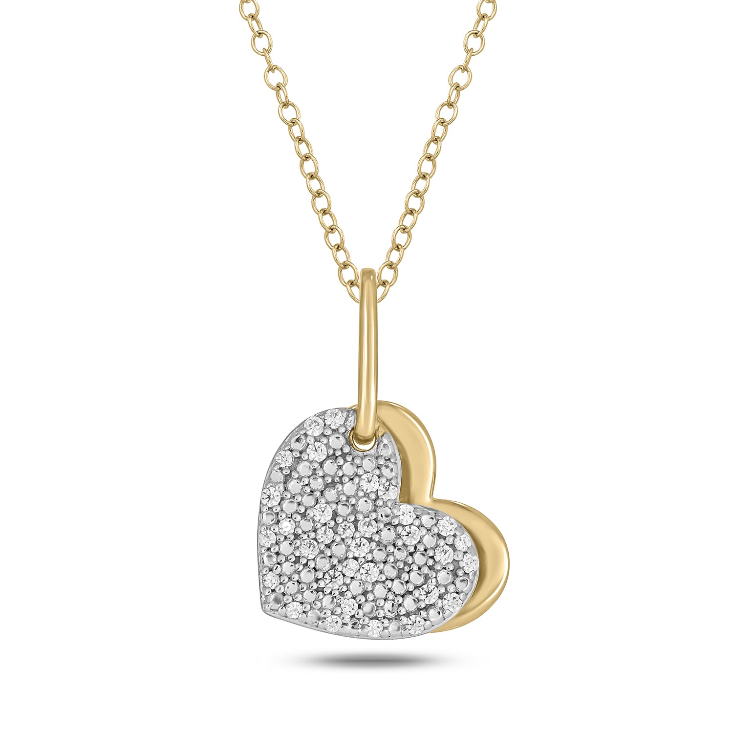 •This Diamond Double Heart Pendant Necklace for Women is crafted in pure 925 Sterling Silver, featuring 1/10 carat natural real diamonds. Also available in 14KT Yellow Gold Vermeil. It comes along with an 18 inch cable chain with spring ring closure providing secure and comfortable fit.