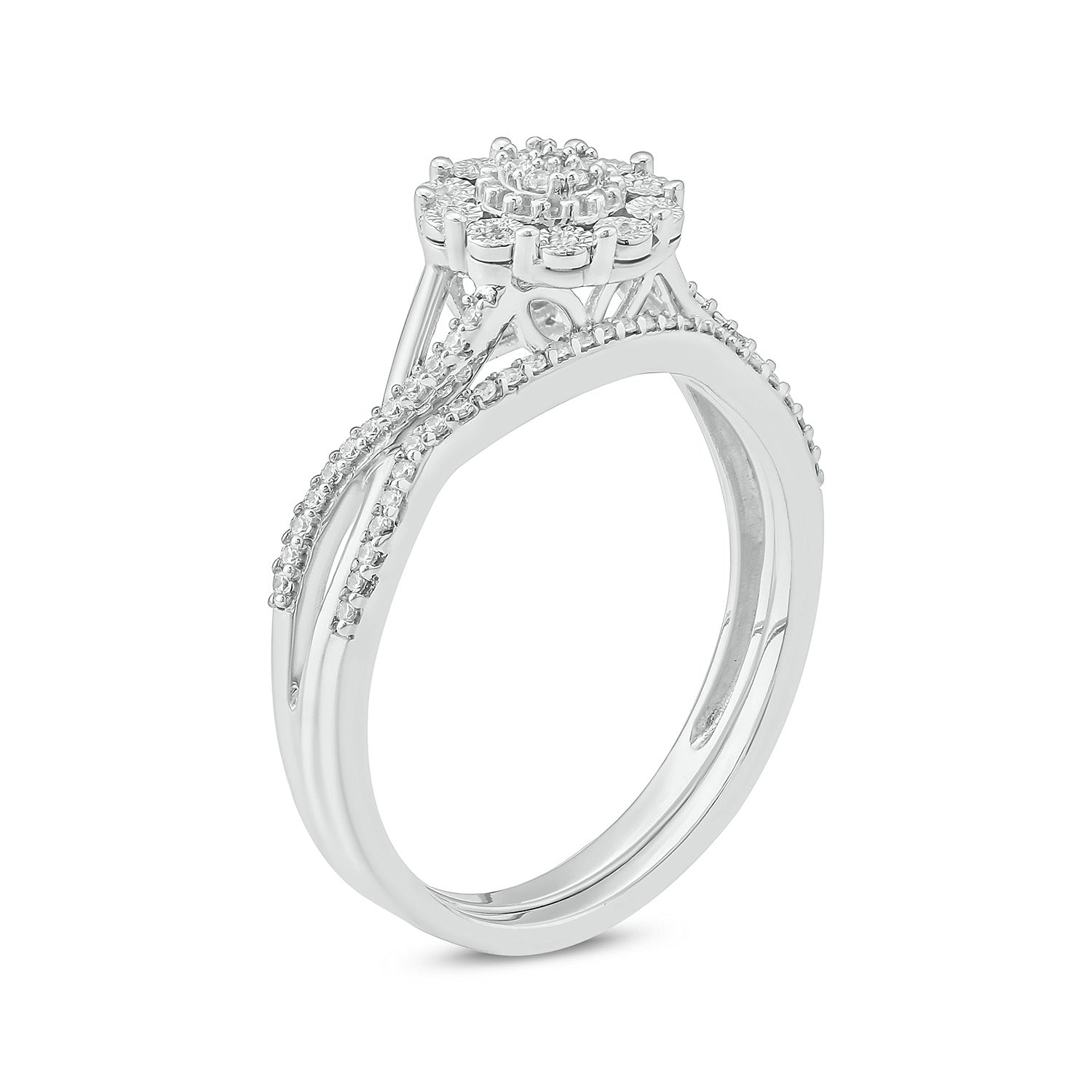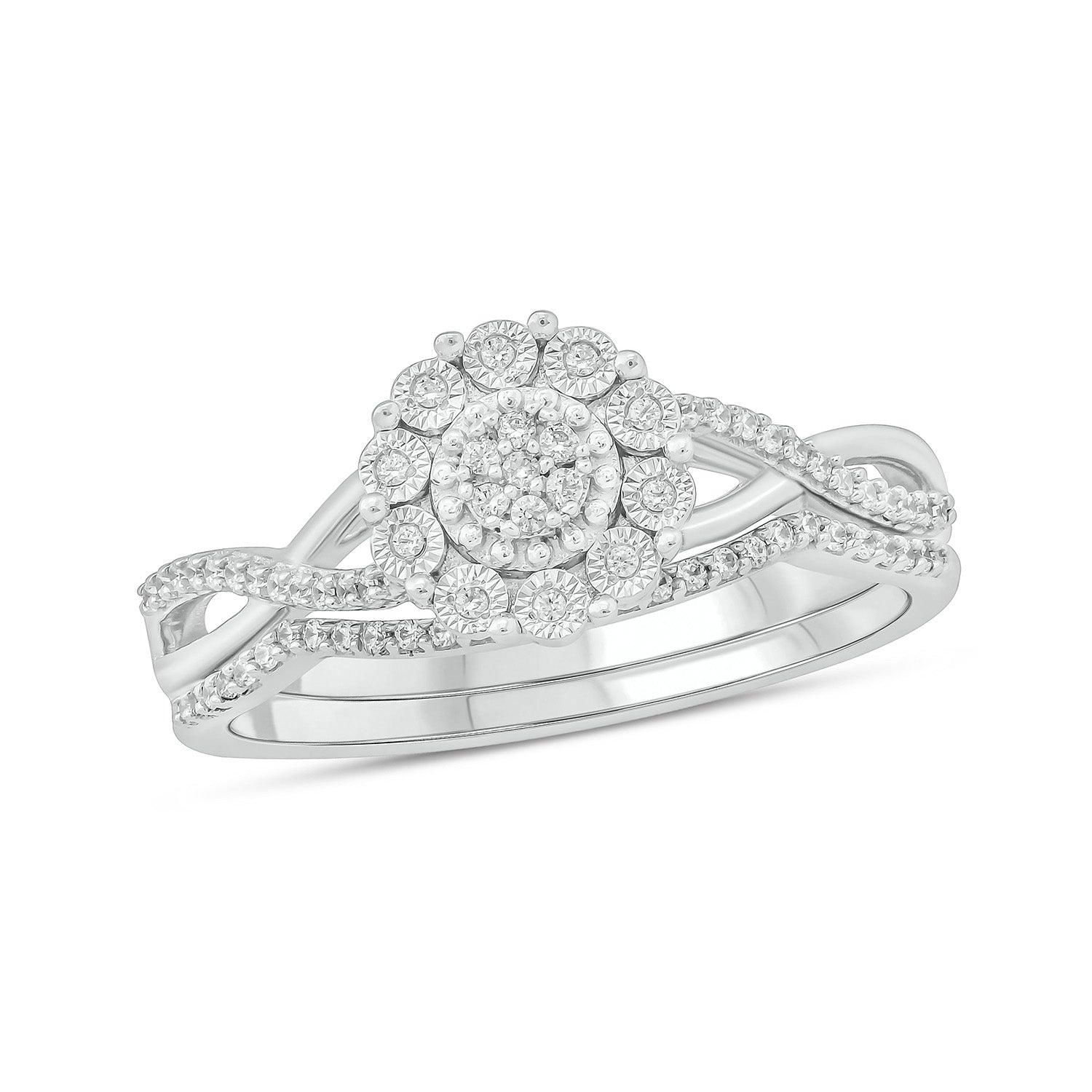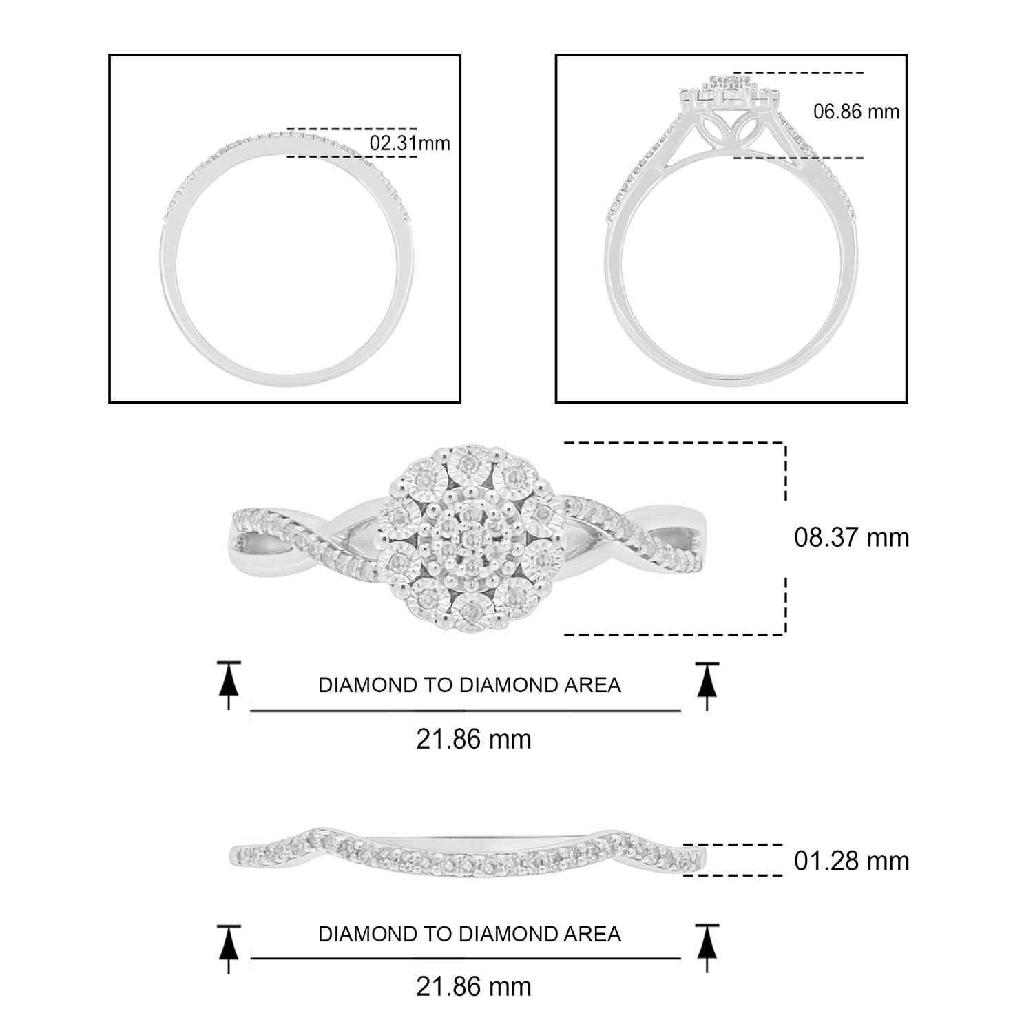 Presenting to you the most stunning bridal ring set design that will make your special occasions even more memorable. The brilliant & unique pattern of the ring offers a trendy appeal to your persona. Beautifully crafted in 925 sterling silver this Miracle Floral wedding ring set features 1/6ct natural round diamonds. This set includes an engagement ring along with a matching wedding band.