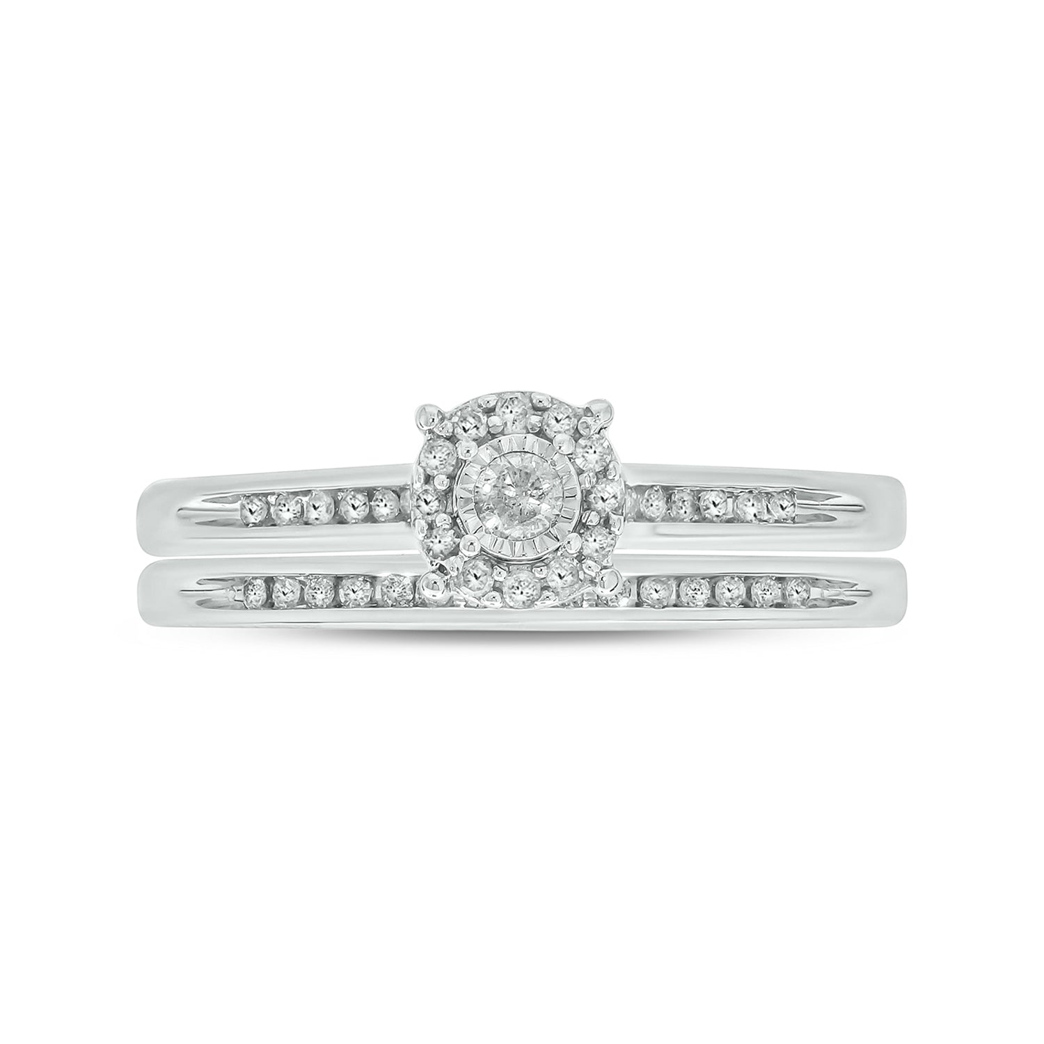 Classic Round Bridal Ring Set in Sterling Silver, Authentic Natural Diamonds