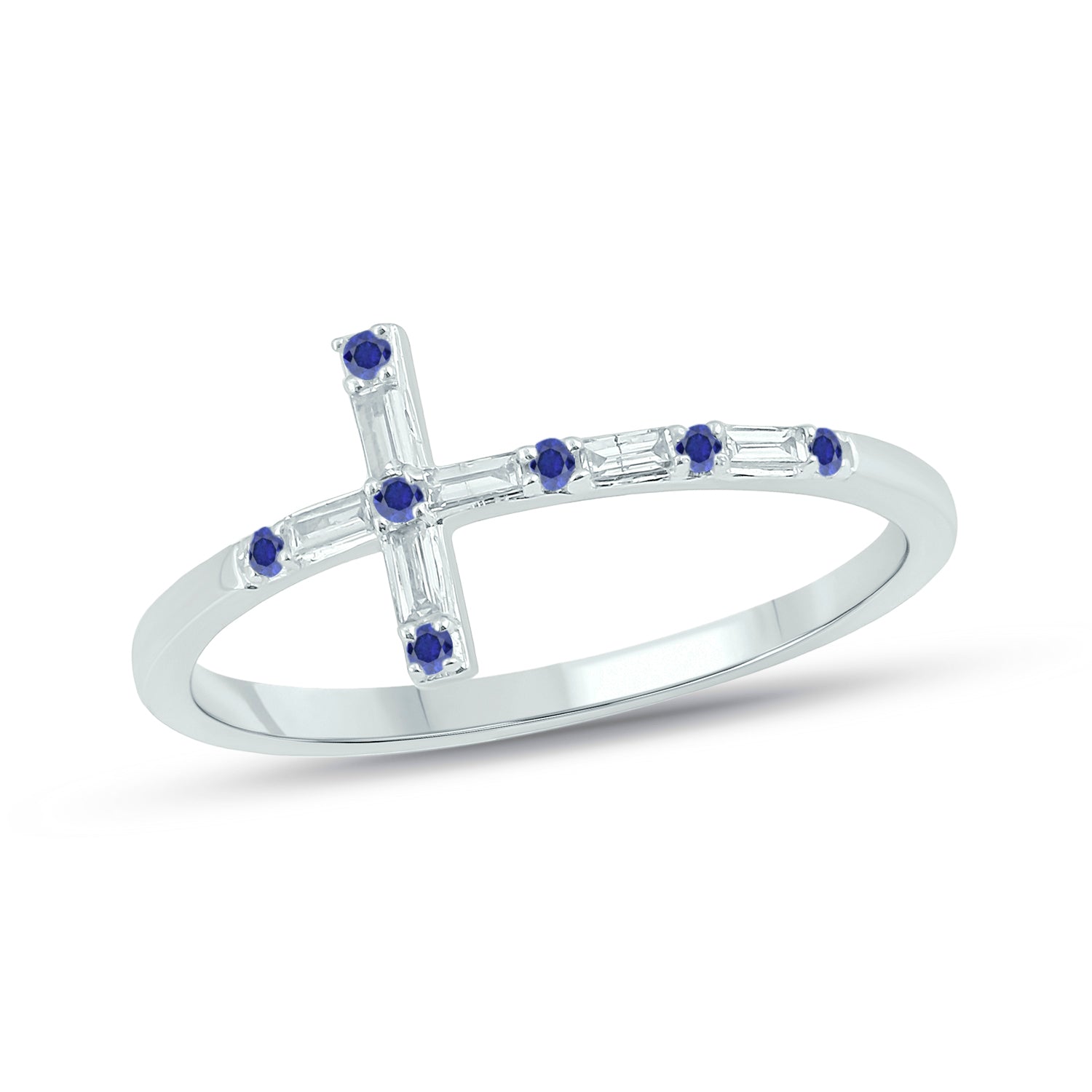Diamond & Gemstone Cross Ring in 14K Gold - Blue Sapphire, Natural Diamonds