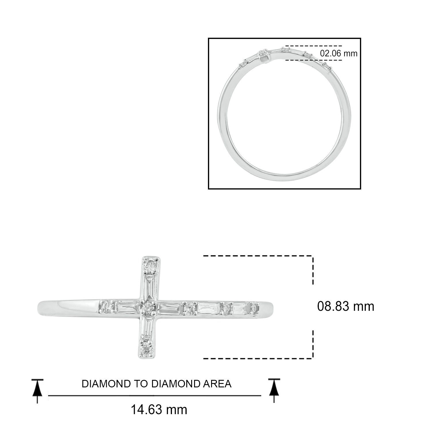 The sign of faith and love, this dainty diamond horizontal cross ring is crafted in 14K gold. It features 1/6ct natural round and baguette diamonds. Choose from your desired metal color - 14K White Gold, Yellow Gold or Rose Gold.